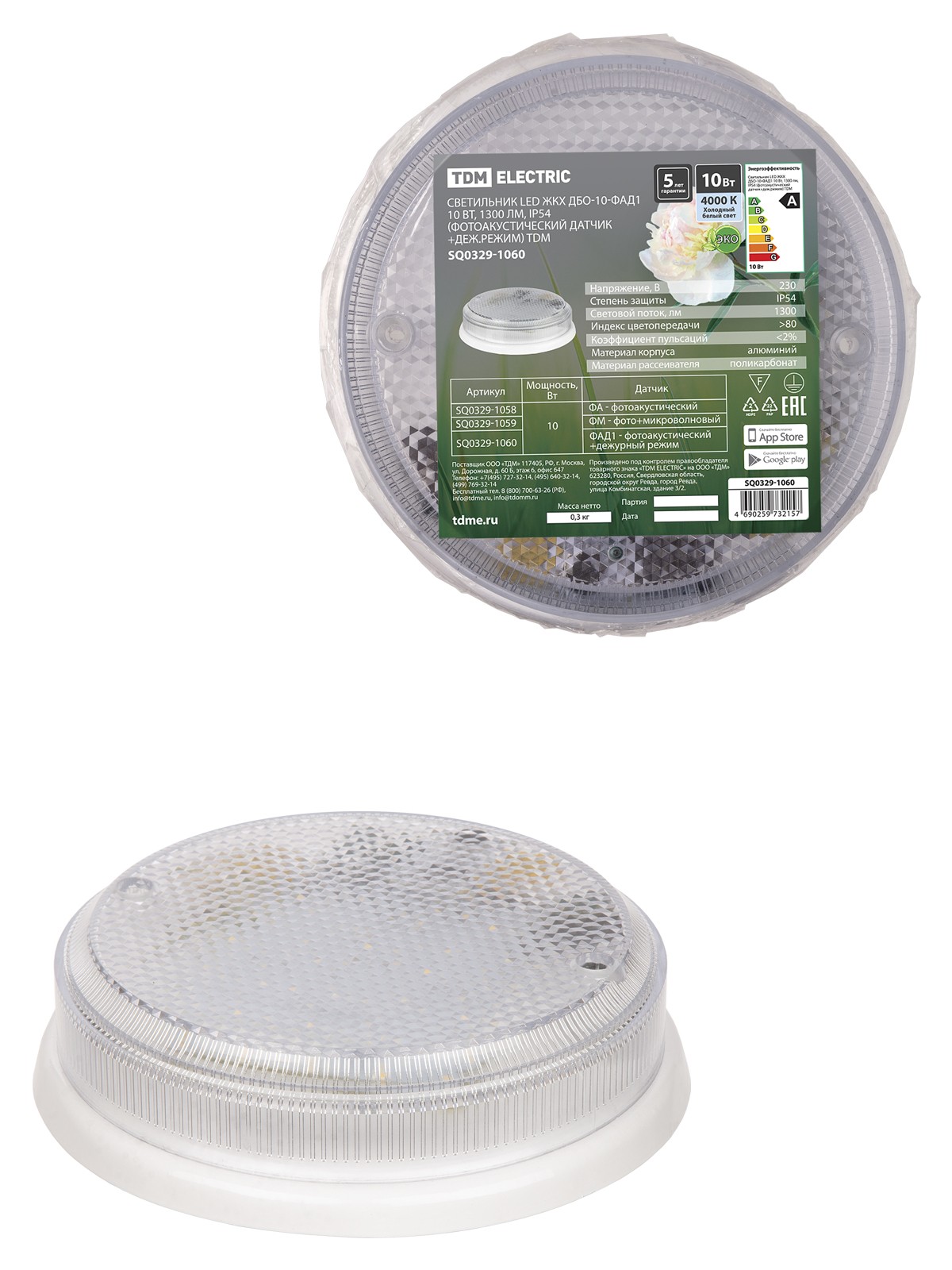 Светильник светодиодный ЖКХ ДБО-10-ФА 10 Вт 1300 лм IP54 (фотоакустический датчик) TDM