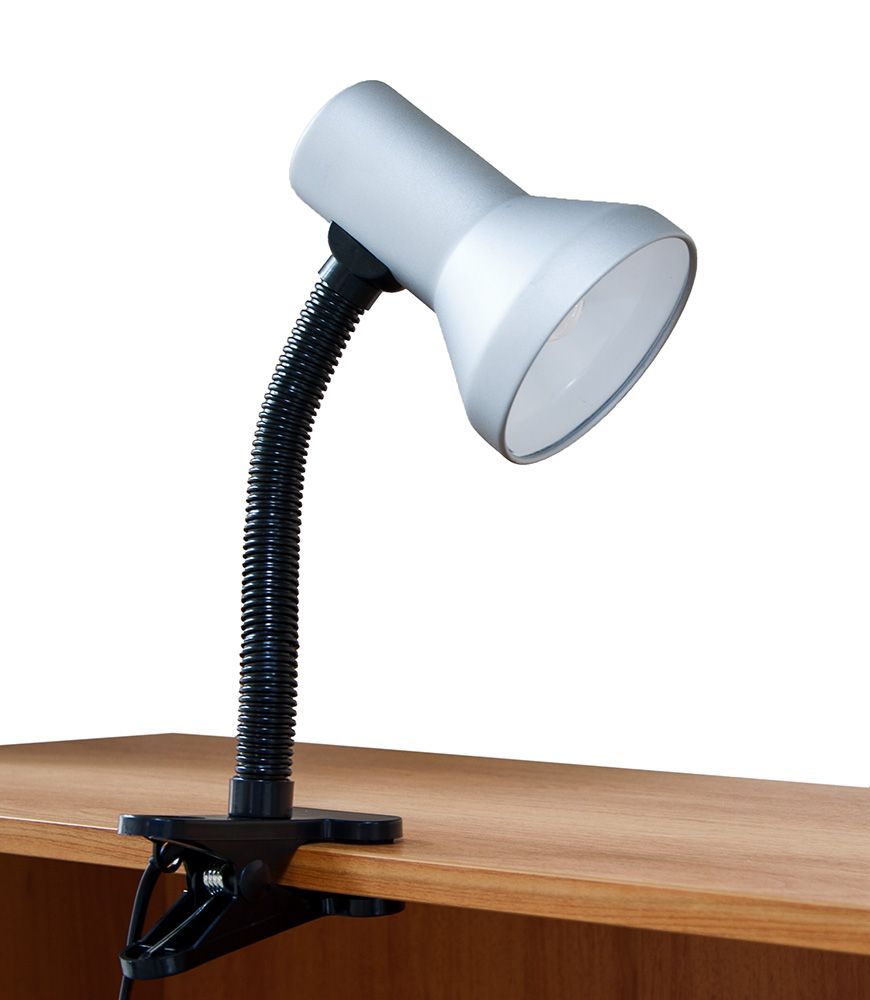 Светильник настольный, На прищепке FERON DE1622, серебро, 9W, 230V, E27 материал металл, пластик, в комплекте сетевой шнур, лампа, 145*170*380мм