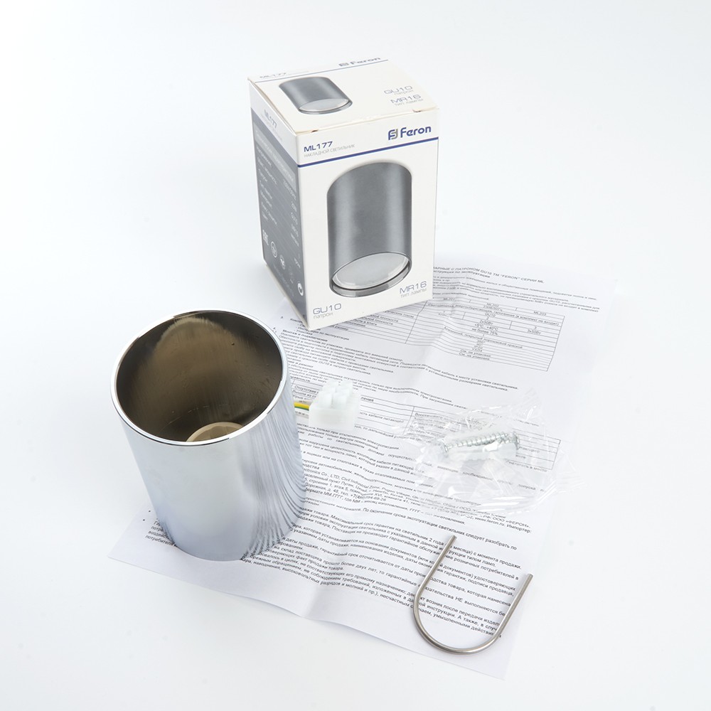 Светильник накладной под лампу, спот неповоротный (ИПО) FERON ML177, GU10 20W, 230V, IP20, цвет хром, корпус металл, 55*55*70