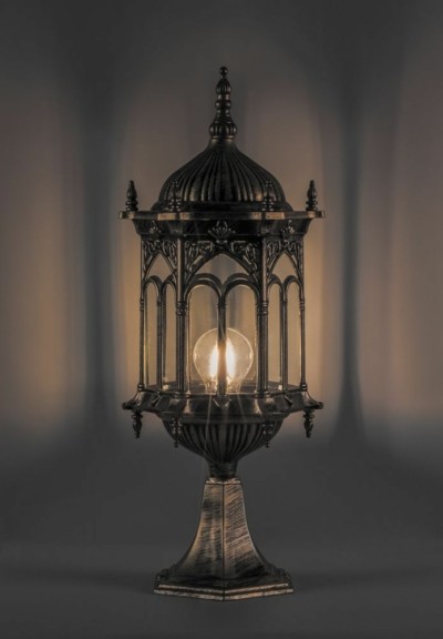 Светильник садово-парковый, серии «Багдад», (НТУ) FERON PL115 1*60W, E27, 230V, IP44, цвет черное золото, 6-и гранник, на постамент, 185*205*520мм