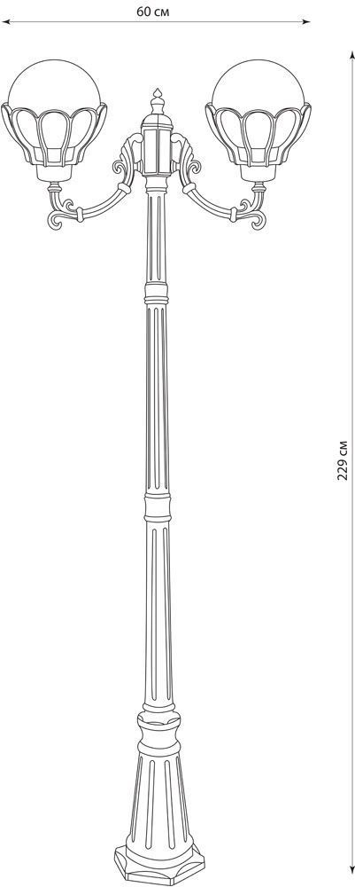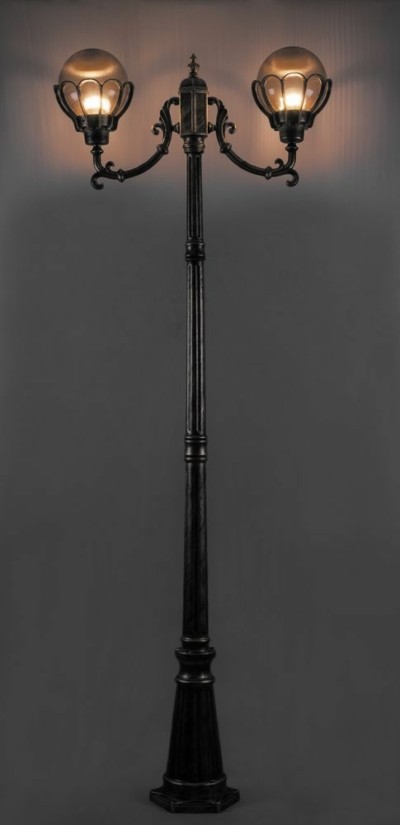 Светильник садово-парковый, серии «Верона», (НТУ) FERON PL5048 60W, E27, 230V, IP44, цвет черное золото, шар, столб большой, 230*600*2200мм