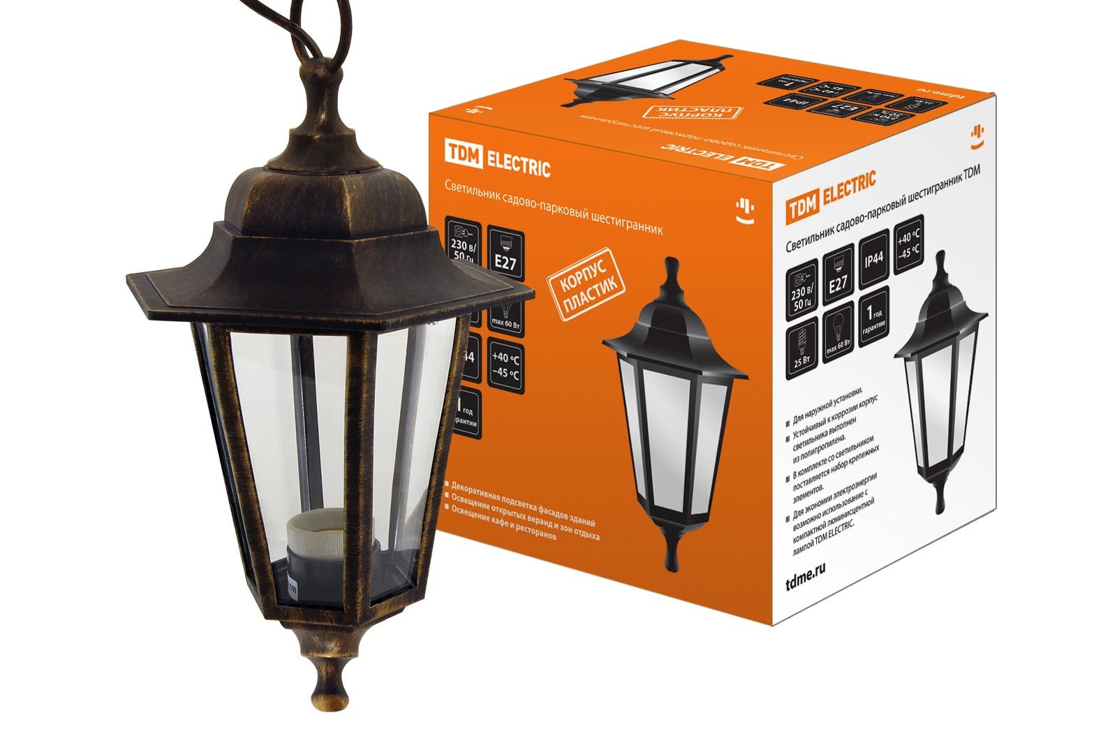 Светильник садово-парковый НСУ 06-60-001 шестигранник, подвес, пластик, расс.пластик, бронза TDM