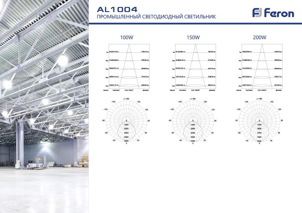 Светильник складской Feron AL1004 IP65 100W 120° 6400K