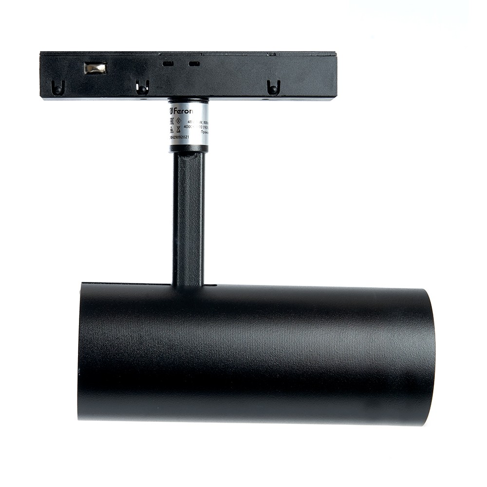 Светильник трековый на шинопровод, - (ДПО) FERON MGN303, 20W, 4000К (белый), 48V, 1800Lm, цвет черный, корпус алюминий, рассеиватель поликарбонат, вращение →350°/↓90°, 168*160*70 мм