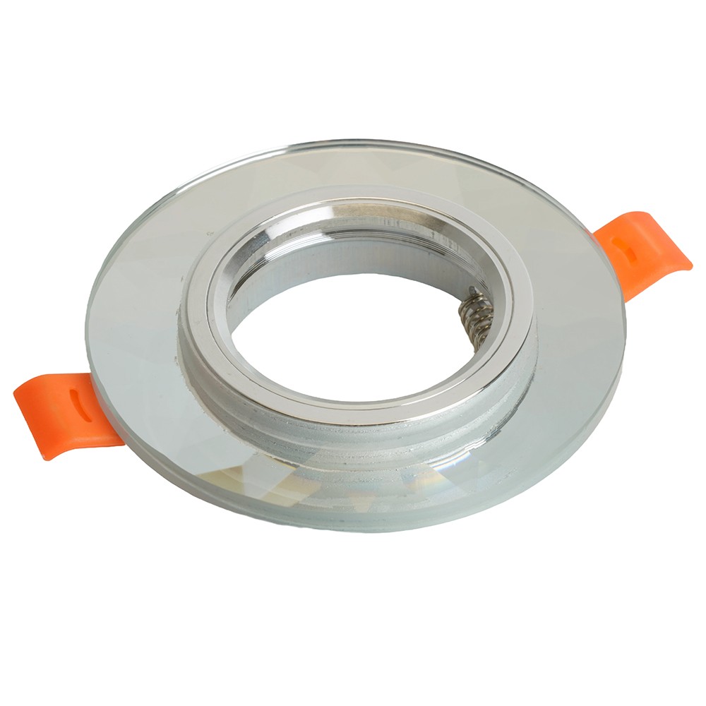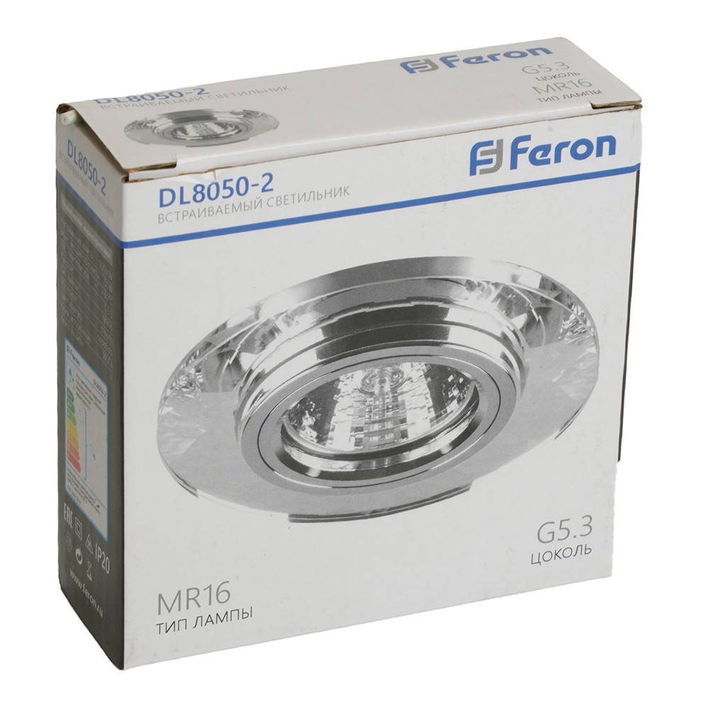 Светильник потолочный встраиваемый (ИВО) FERON DL8050-2/8050-2, под лампу MR16 G5.3, прозрачный хром, круг, 95*95*23 мм, монтажный диаметр 60мм, корпус стекло, неповоротный