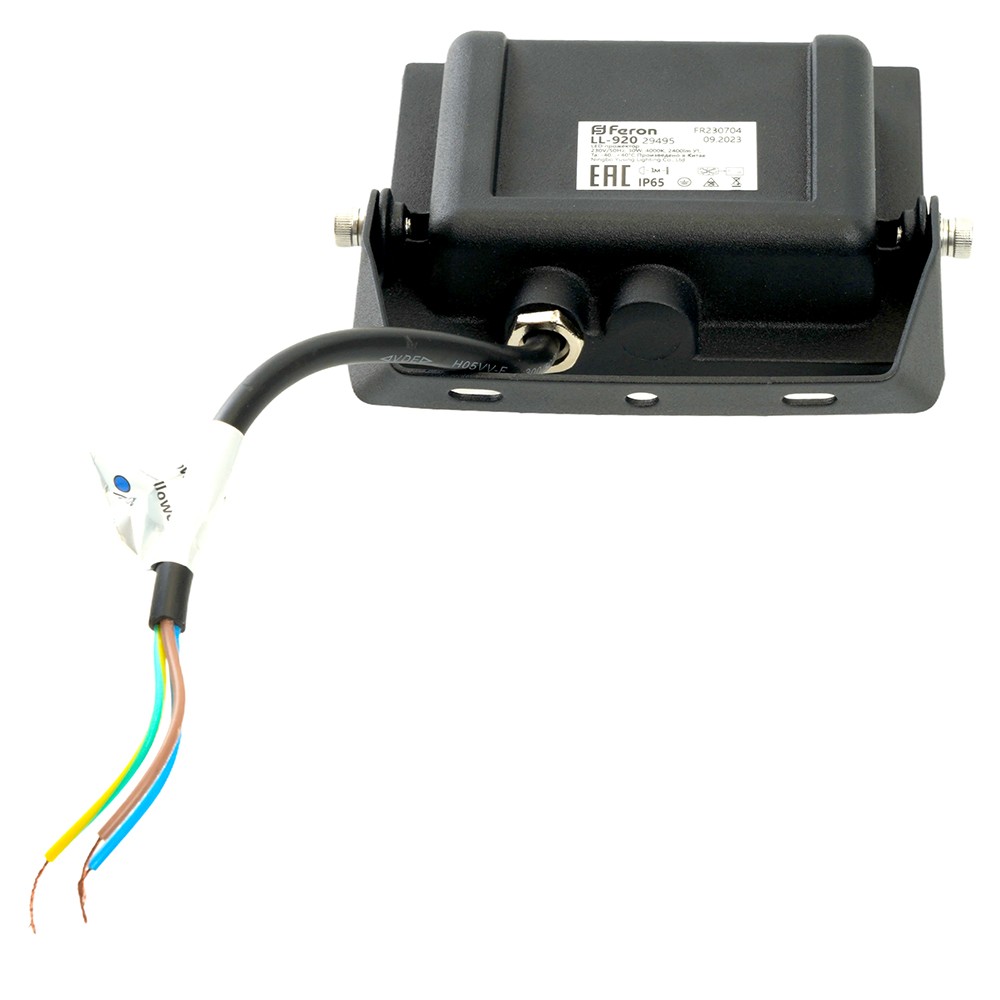 Прожектор светодиодный многоматричный с монтажным креплением на кронштейн, (ДО) FERON LL-920 , 30W, 6400К (холодный белый), 230V/50Гц, 2400Lm, IP65, угол рассеивания 120°,*SMD2835, раб.t -40°C - +40°C, цвет чёрный, корпус алюминий литой под давлением + стекло, 103*24*100 мм