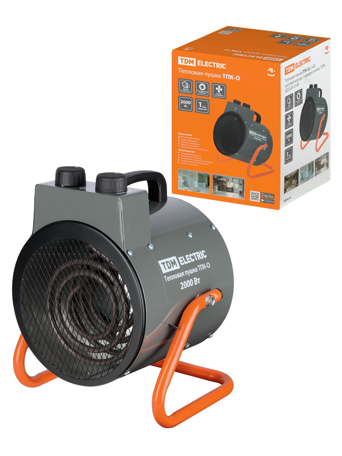 Тепловая пушка ТПК-О, 2 кВт, круглый корпус, терморегулятор, TDM