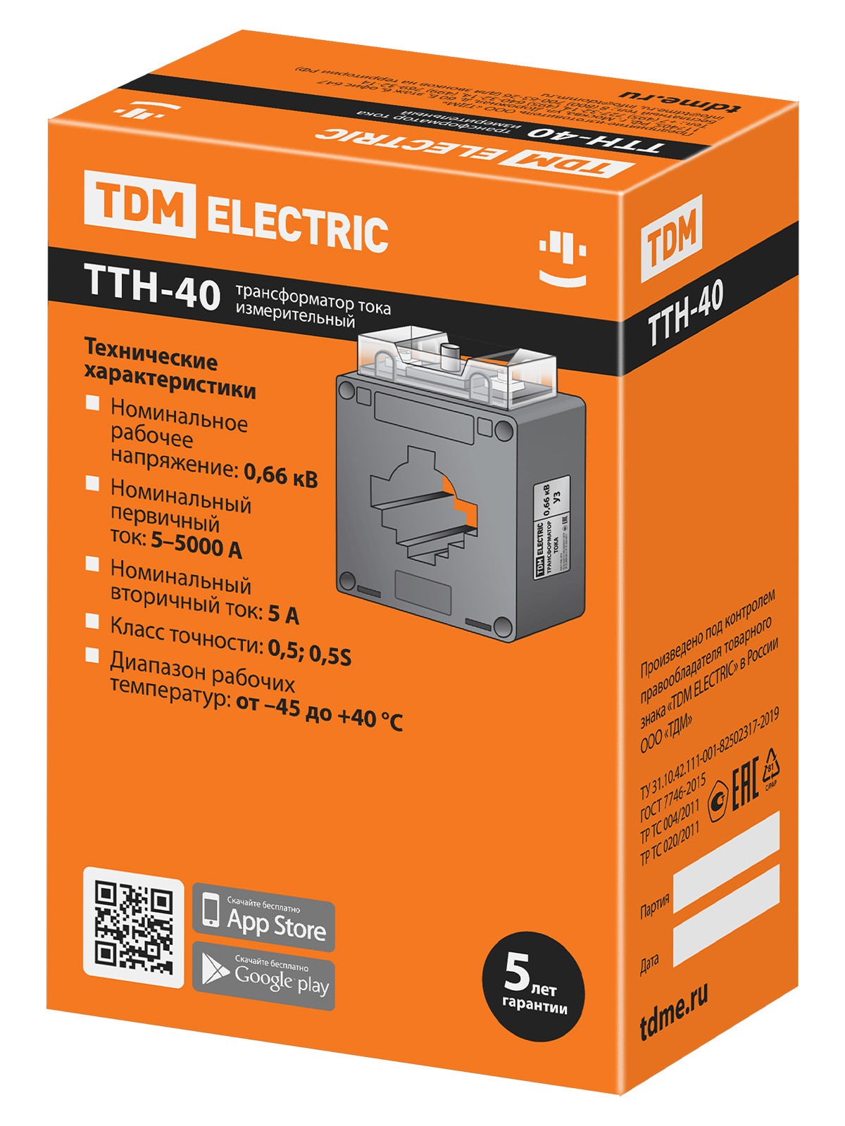 Трансформатор тока измерительный ТТН 40/500/5- 5VA/0,5-Р TDM