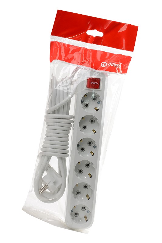 Удлинитель сетевой 6х5м с/з 16А IP20 с выкл. Makel MGP234