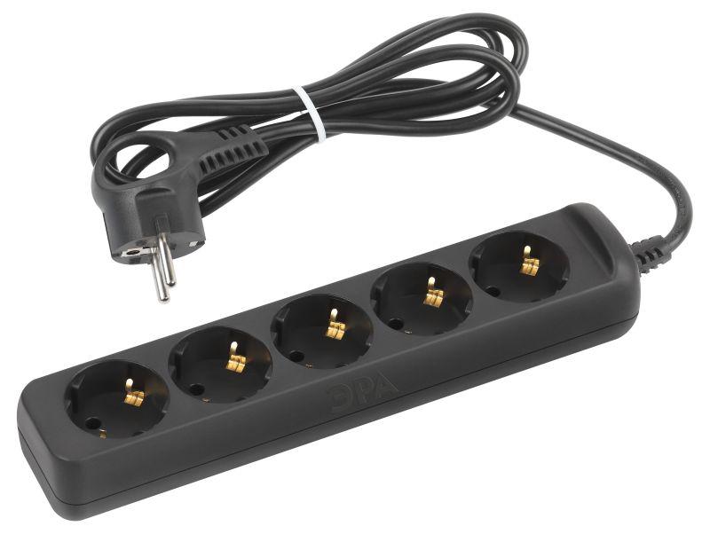 Удлинитель сетевой UX-5e-1.5m-B с/з 5-м 1.5м ПВС 3х0.75кв.мм 10А черн. Эра Б0057724
