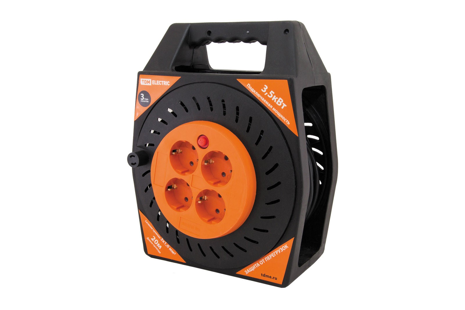 Удлинитель силовой УКз16-004 TDM (IP44 4-м/50м КГ 3х1,5 пласт. катушка)