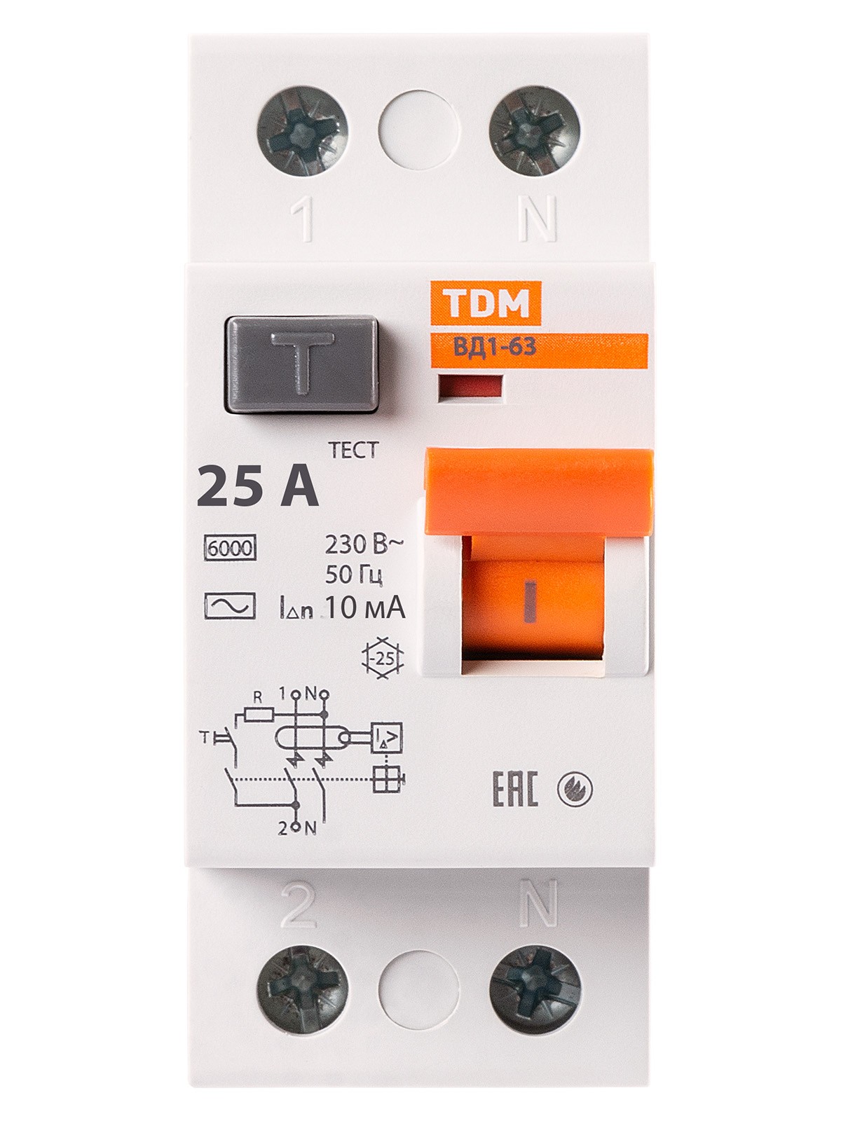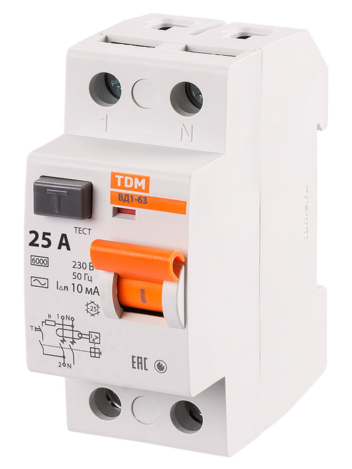 Устройство защитного отключения ВД1-63 2Р 25А 10мА TDM