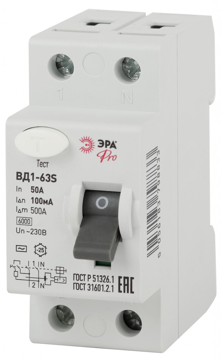 УЗО ЭРА PRO NO-902-151 ВД1-63S 1P+N 50А 100мА