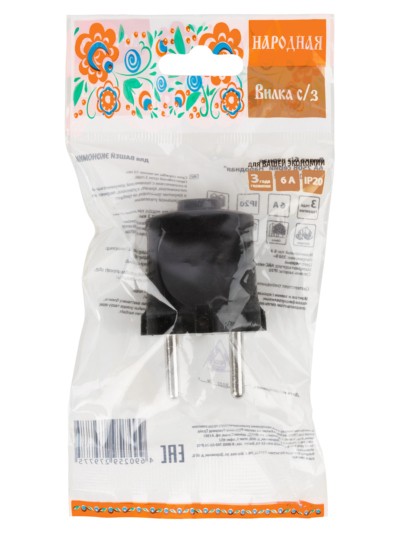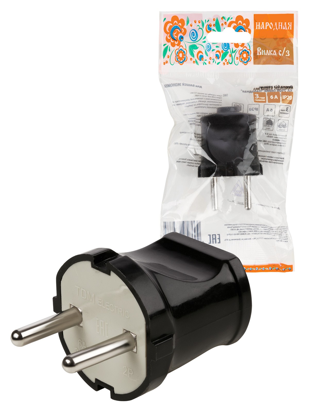 Вилка прямая с/з черная 16А 250В серии "Народная"