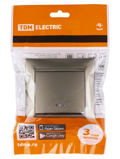 Назначение: Управление сетями освещения. Подключение коммуникационных устройств к информационным сетям. Подключение бытовых нагрузок к сети переменного тока. Применение: Объекты коммерческой недвижимости (офисы, торговые центры и т.д.). Жилые помещения (дома, квартиры и т.д.). Инфраструктурные объекты (больницы, школы и т.д.). Преимущества: Три цветовых решения серии позволяют наиболее точно подобрать соответствующие интерьеру электроустановочные изделия. Прочный металлический суппорт с монтажными «лапками» изготовлен из оцинкованной стали и обладает повышенной прочностью и устойчивостью к коррозии. Благодаря мостовым винтовым зажимам в розетках возможно создание шлейфа (параллельного соединения нескольких рядом стоящих розеток) без использовании клеммников. Светодиодная подсветка выключателей дает четкий и яркий ориентир в темноте. Благодаря наличию пружины в контактах розеток обеспечивается надежный прижим вилок разного сечения (от 2,5 до 5 мм) без потери фиксирующих свойств. К каждому изделию в яркой индивидуальной упаковке со стикером, на который нанесена вся необходимая информация о изделии и штрихкод EAN-13, прилагается паспорт с подробной инструкцией по монтажу Конструкция: Материалы: Пластиковое основание механизмов отличается высокой устойчивостью к внешним воздействиям и длительным сроком службы. Контакты розеток выполнены из высокоупругой фосфористой бронзы, обеспечивающей надежный контакт и пожаробезопасность на протяжении всего срока службы изделий. Латунные контакты выключателей позволяют сочетать высокую дугостойкость с хорошей проводимостью. Лицевые накладки выполнены из поликарбоната, обеспечивающего повышенную прочность, термостойкость изделий и устойчивость к истиранию и воздействию солнечных лучей. Комплектация: Упаковка: