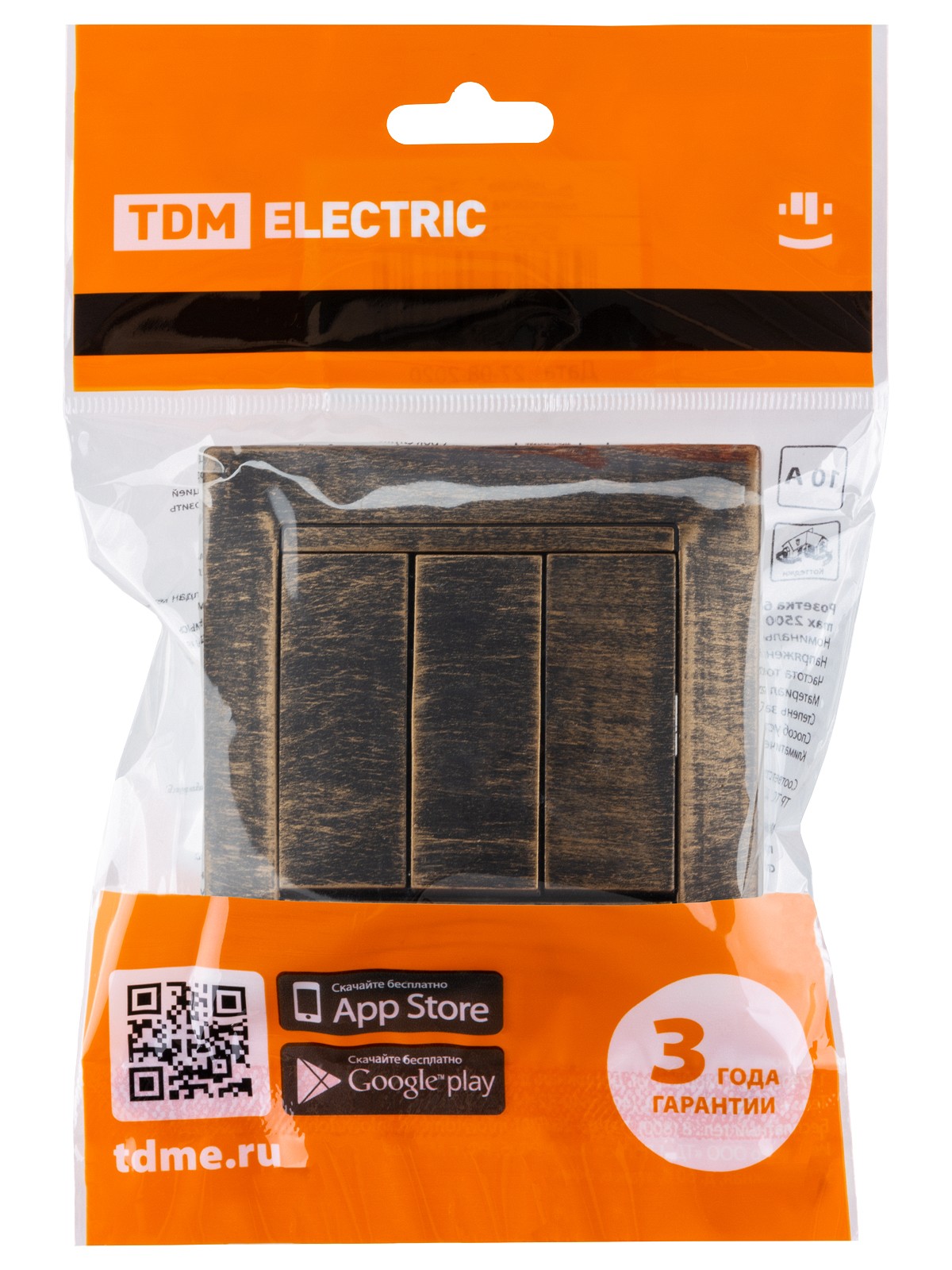 Выключатель 3-х кл. 10А старинная бронза "Лама" TDM