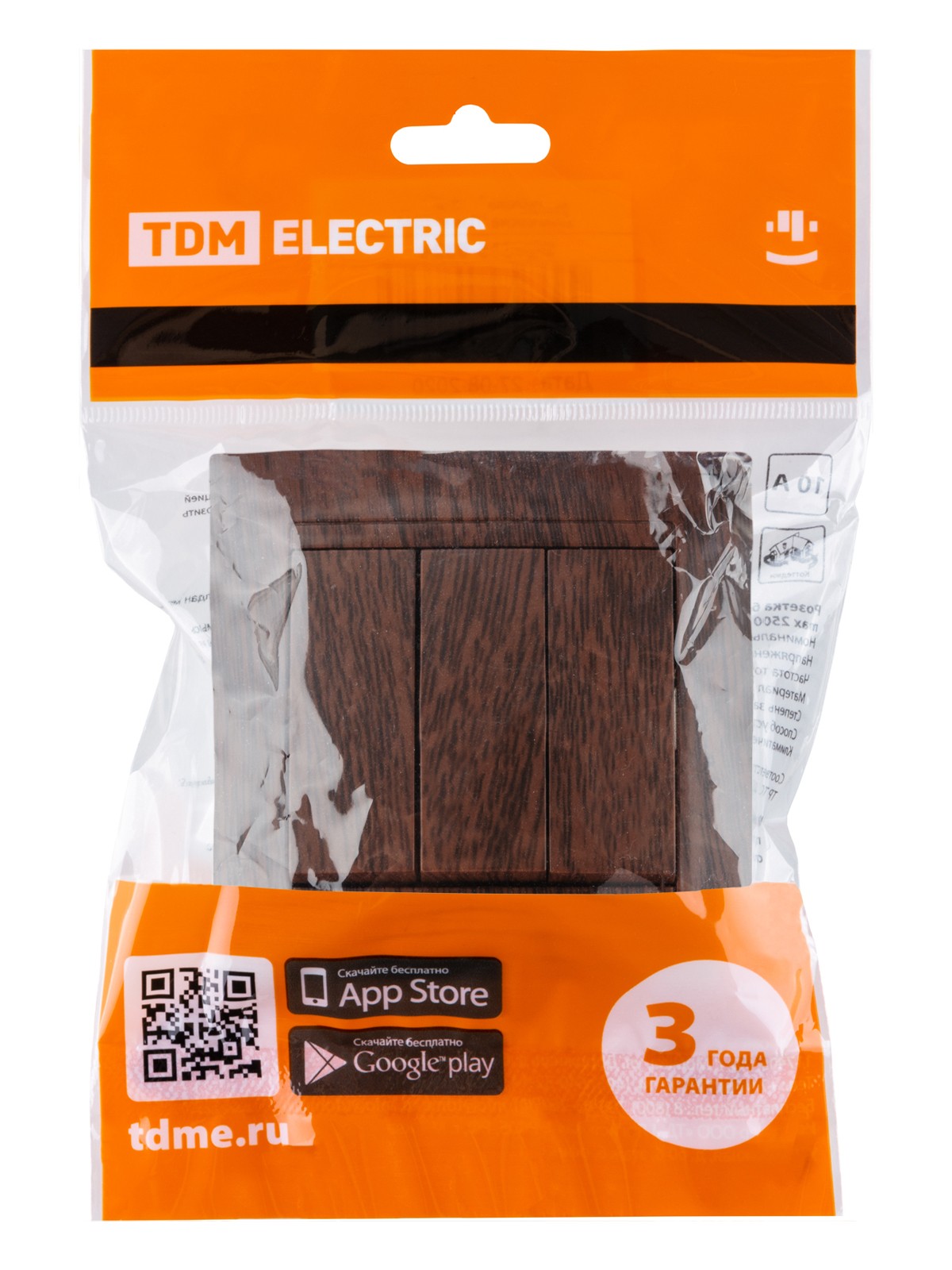 Выключатель 3-х кл. 10А венге "Лама" TDM