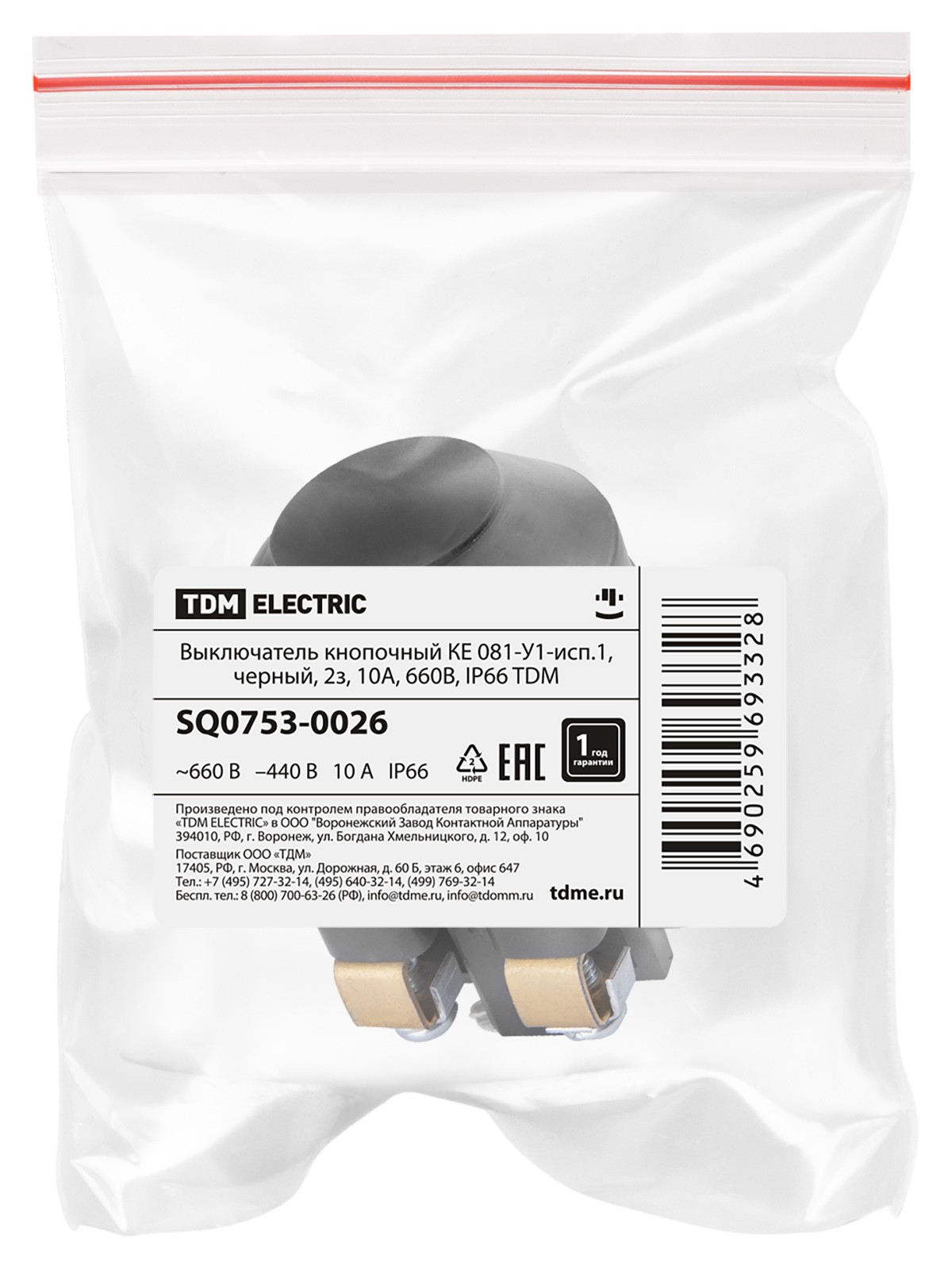 Все товары похожие и смежныеВыключатель кнопочный КЕ 081-У1-исп.2, черный, 1з+1р, 10A, 660B, IP66 TDM
