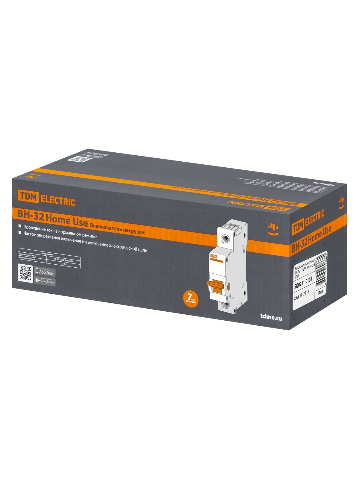 Назначение: Частое оперативное включение и выключение электрической цепи. Проведение тока в нормальном режиме. Применение: Вводно распределительные устройства для жилых домов и общественных зданий Преимущества: Облегченная конструкция. Защелка на DIN-рейку с фиксацией упрощает монтаж и демонтаж аппарата. («видимый разрыв») для проведения работ на линии. Подвод питающей линии может производиться как через верхние, так и через нижние клеммы, без нарушения работоспособности. Клеммные зажимы автомата промаркированы, что позволяет избежать ошибок при монтаже. Конструкция: защищает аппарат от случайных включений при проведении работ на линии. позволяет усилить конструкцию аппарата и предотвратить его распирание при затягивании клеммных винтов. Материалы: Корпус и детали выполнены из пластика, не поддерживающего горение. Комплектация: Упаковка: ВН-32 Home Use 1P по 12 шт. ВН-32 Home Use 2P по 6 шт. ВН-32 Home Use 3P по 4 шт. ВН-32 Home Use 4P по 3 шт. Руководство по эксплуатации - 1 шт. на групповую упаковку Паспорт - 1 шт. на групповую упаковку