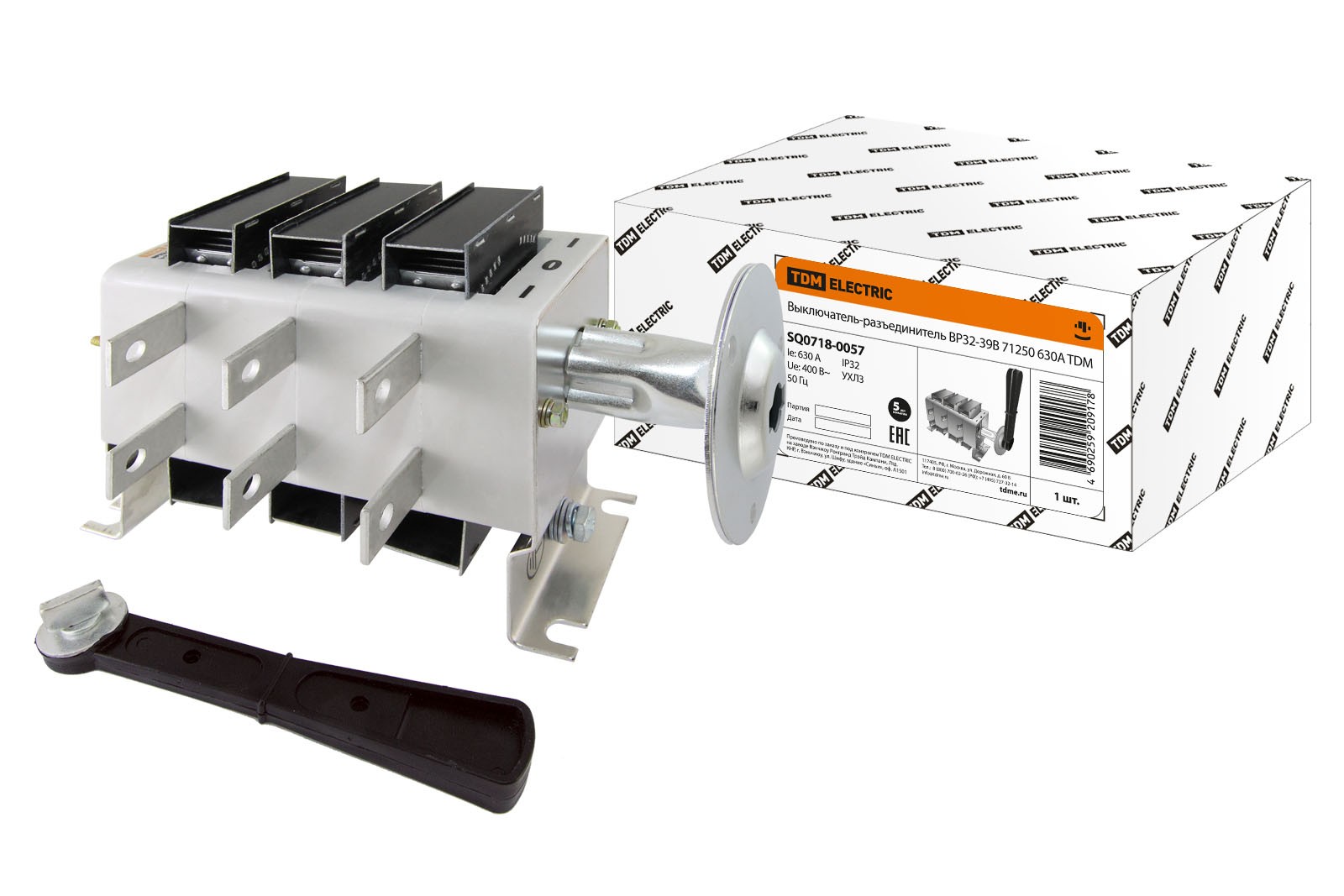 Назначение: Включение, пропускание и отключение переменного тока номинальным напряжением 660В номинальной частоты 50 и 60Гц. Применение: Производственные помещения. Жилое и гражданское строительство. Электроподстанции. Преимущества: Конструкция: Контактная система ножевого типа с двойным видимым разрывом цепи обеспечивает безопасность обслуживания Съемная рукоятка позволяет повысить безопасность эксплуатации электроустановки (фото) Дополнительная цветовая индикация положения «Включено» сигнализирует о необходимых мерах предосторожности (фото) Дугогасительные камеры, большой раствор контактов, двойной разрыв цепи обеспечивают эффективное гашение электрической дуги. Материалы: Корпус ВР32 выполнен из самозатухающего механически прочного пластика (фото) Контактные выводы выполнены из высококачественной электротехнической меди с нанесенным защитным покрытием (фото) Комплектация: Упаковка: