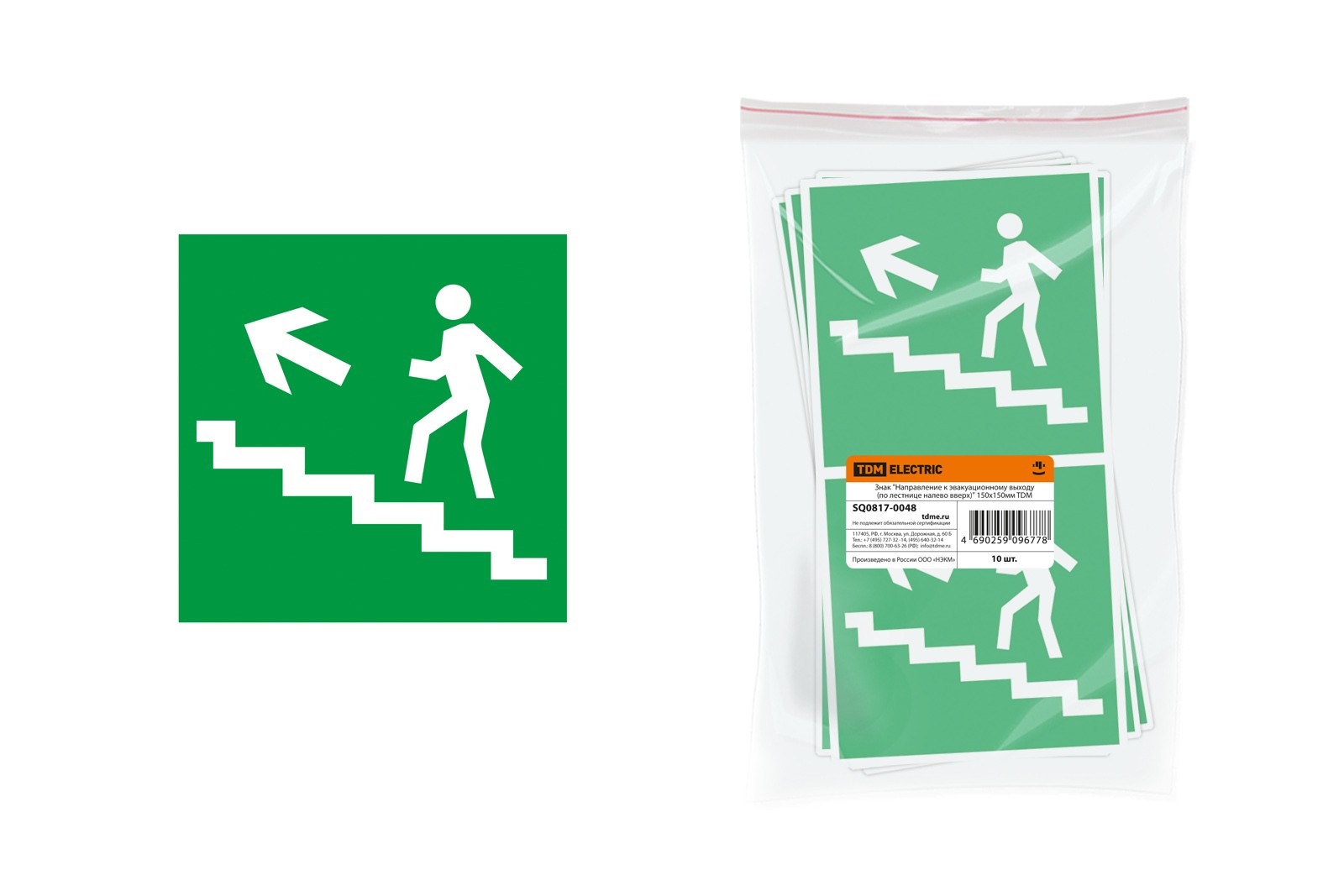 Знак “Направление к эвакуационному выходу налево вверх” 350х124мм для ССА инд. упаковка TDM